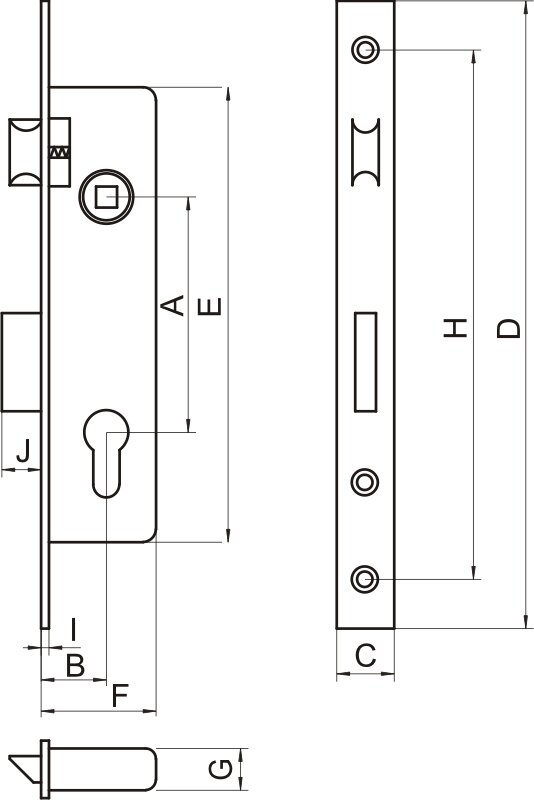 - Zamek zapadkowo-zasuwkowy, wąski 92/25 mm