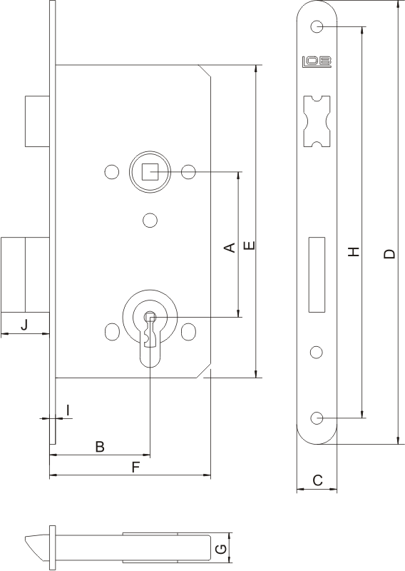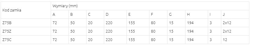 - Zamek przeciwpożarowy, wpuszczany 72/50 mm