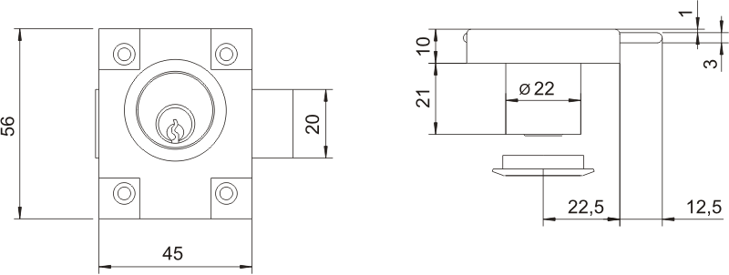 - Zamek meblowy, wierzchni, zasuwkowy.