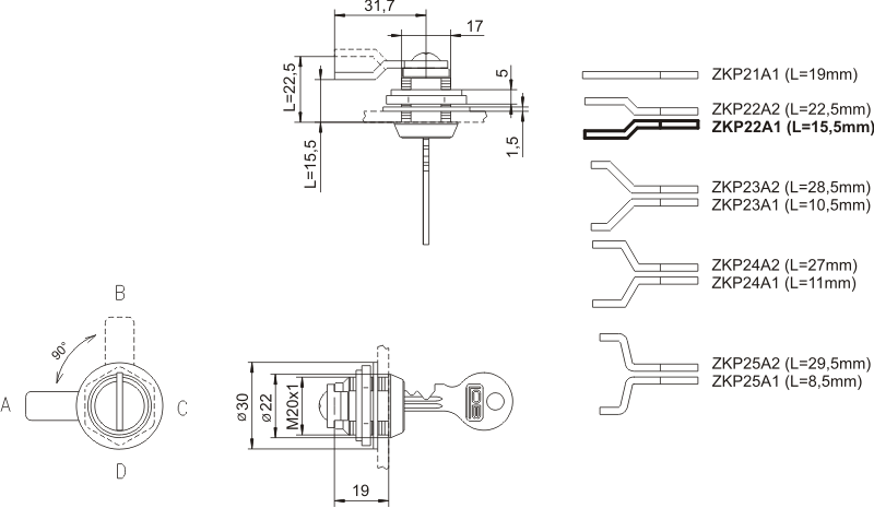 - Zamek kasetowy, płytkowy.