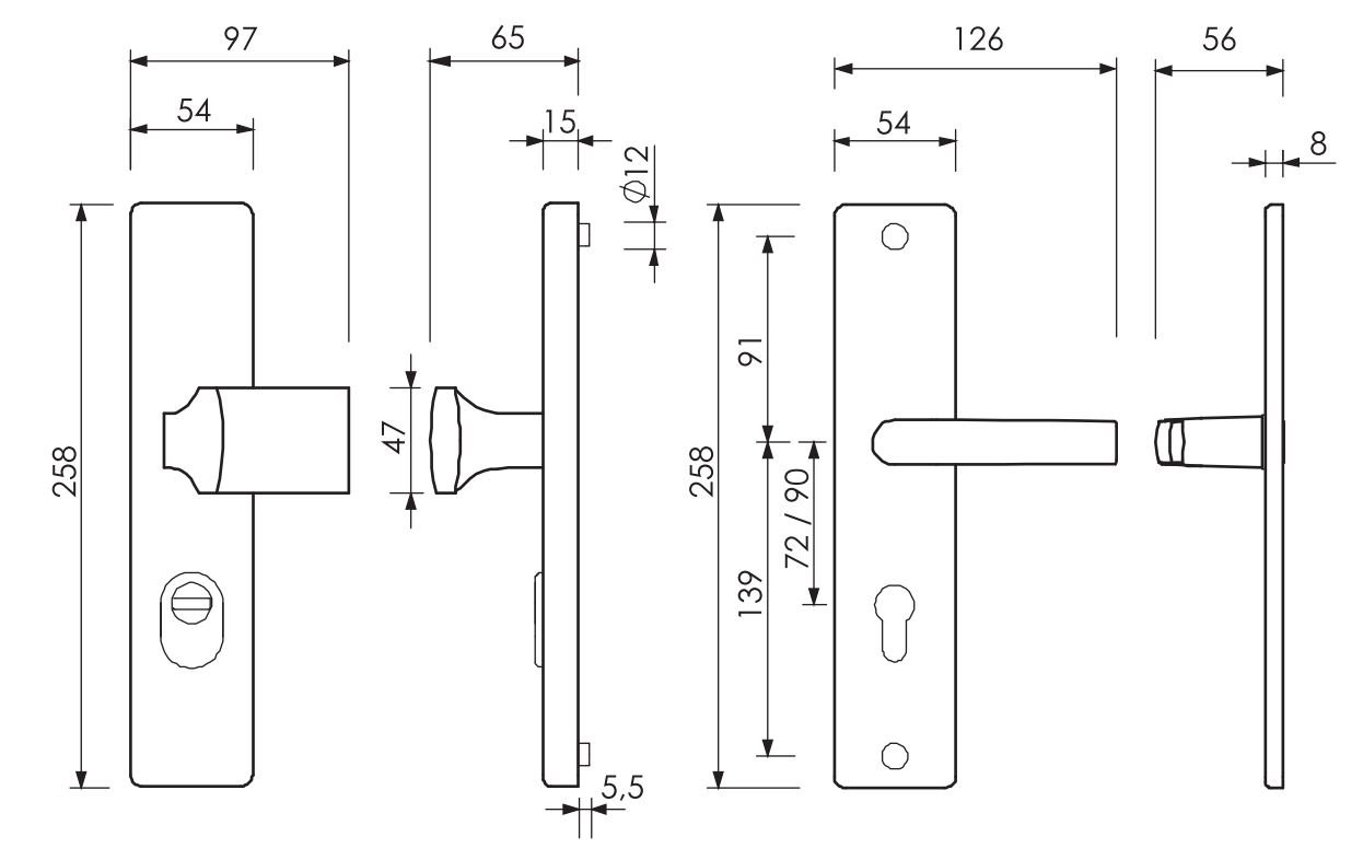 - Komplet (klamka + klamka).