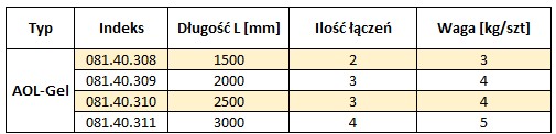 - - długość całkowita 3000 mm